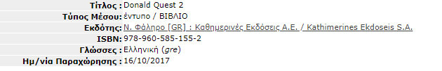 Πρόκειται για το Donald Quest που είναι σχεδιασμένο από διάφορους Ιταλούς όπως ο Andrea Freccero και ο Stefano Zanchi (του οποίου ιστορία θα διαβάσουμε στο Μίκυ Μάους #196) που δημοσιεύτηκε πρώτη φορά ως μίνι σειρά στην Αμερική σε 5 τεύχη και υπάρχει και συγκεντρωτικός τόμος με μαλακό εξώφυλλο που περιέχει όλη τη σειρά από την IDW. Πέρσι τέτοια εποχή είχα αποφασίσει ότι θα κάνω κριτική των Αμερικάνικων τευχών αλλά για διάφορους λόγους δεν το συνέχισα και μετά από κάποια στιγμή ή το ξέχναγα ή αποφάσισα να επικεντρωθώ σε άλλα άρθρα. Πάντως εάν το δούμε στα Ελληνικά θα κάνω κριτική των τευχών του. Ο Αμερικάνικος τόμος έχει 168 σελίδες οπότε άνετα η Καθημερινή μπορεί να χωρίσει τον τόμο και να έχει 2 τεύχη με πάνω κάτω 84 με 100 σελίδες. Εάν θυμάμαι καλά το Donald Quest φέτος έχει αρχίσει να βγαίνει σε συγκεντρωτική έκδοση και σε άλλες χώρες και μπήκε και σε Topolino στην Ιταλία. Οπότε μου φαίνεται λογικό ότι μάλλον θα το δούμε και εδώ.