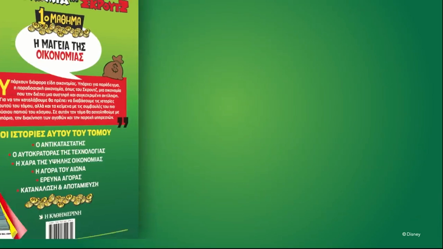 Χθες η Καθημερινή κυκλοφόρησε ένα video για το πρώτο τόμο της Οικονομίας του Σκρουτζ που θα αρχίσει να κυκλοφορεί από αύριο. Έτσι μπορούμε να δούμε τη δομή που θα έχει το τομακι αλλά και τις ιστορίες που θα περιέχει.