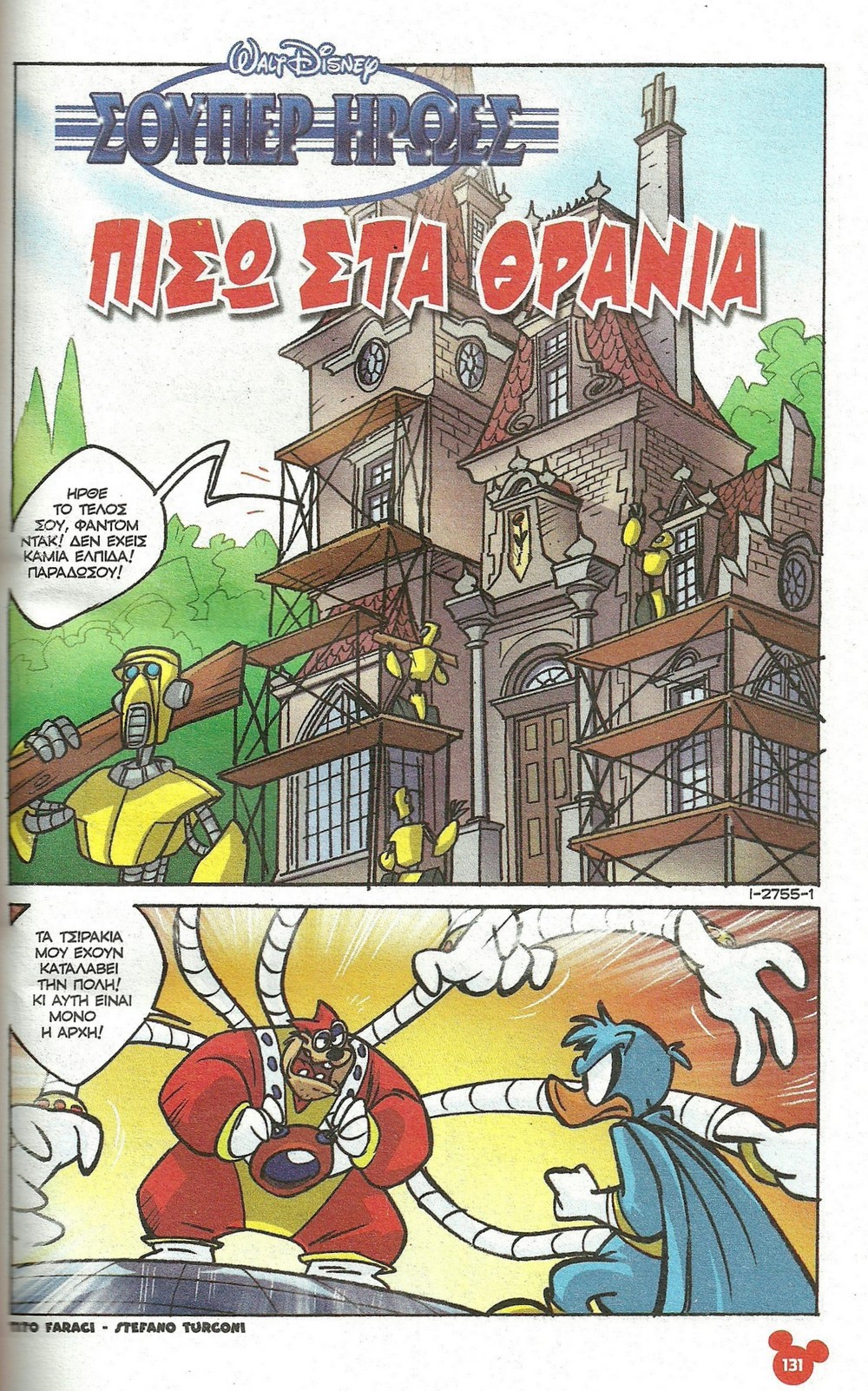 Fantomas with the Semi-High: History I hadn't read in years and I kept saying where I had put the Almanac that had it, but Kathimerini caught up with me. 😛 The plan is very beautiful. We're talking about Massimo De Beta. 🙂 The coloring unfortunately is somewhat and it is strange to have a new version and the coloring of the old one to be better but anyway. That's a good story, which I used to like because Phantom And Marvel Duck didn't satisfy his whims Scrooge. So what would he do then? He became a superhero and especially a classic had his phase and in the end he was effective in terms of state-of-the-art weapons. Personally, I'd like to see Fantoma with the Half-High again sometime. However, I laughed a lot at the frame with Scrooge where he was blackmailing journalists who are doing their work at nothing.