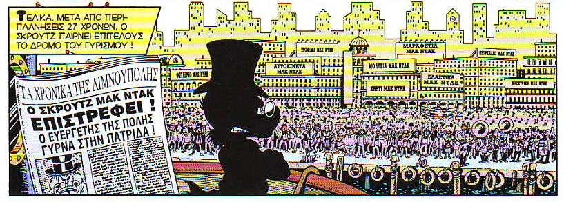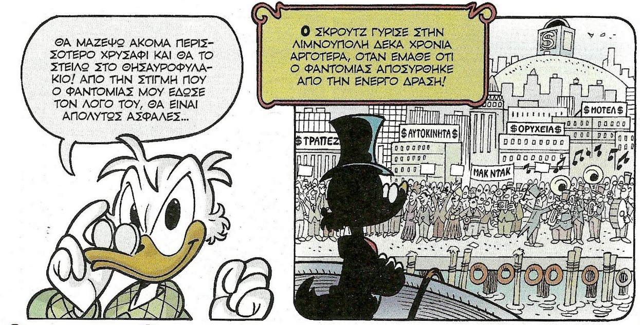 And how he connects another of his most important moments Live and State? What am I talking about? For Scrooge's final return to Limnoupoli! Who returns because with Fantomia's withdrawal he is no longer in danger. The designer's frame was wonderful and it reminded me of the scene of the life. Well done and that way it doesn't alter Scrooge's story at all. We're talking about the man shaking! And I forgot to mention the first frames on the ship with the striped ruby that reminds Vio again. But I'm going back to the last page, especially the last two frames. A few frames before and I was happy and the last two come for the mattress and I smile and laugh and I said storyteller. They really deserve respect. A little diamond for me and Fandomia's best story with his origin taking second place in terms of his stories.