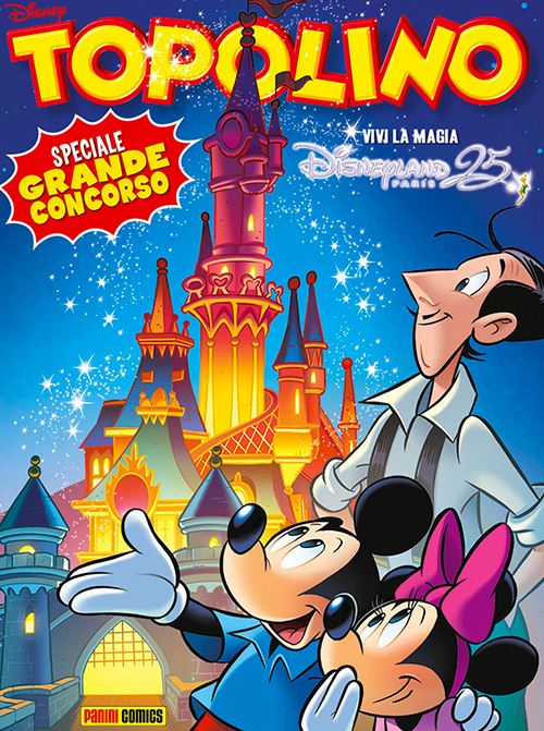 The one Walt Disney has as guest star the cover the new issue of Topolino, celebrating the 25th anniversary for Disneyland, Paris, which is today on April 12. The story seems interesting and a beautiful way to pay tribute to the great Disney. We might see him in history beyond the cover, which I find beautiful. The plan, from the first page we have, I don't see anything special but it looks good. However, I'm curious to know where this 25 star refers to as regards the rest of the stories there's nothing interesting. Soon more news from Italy.